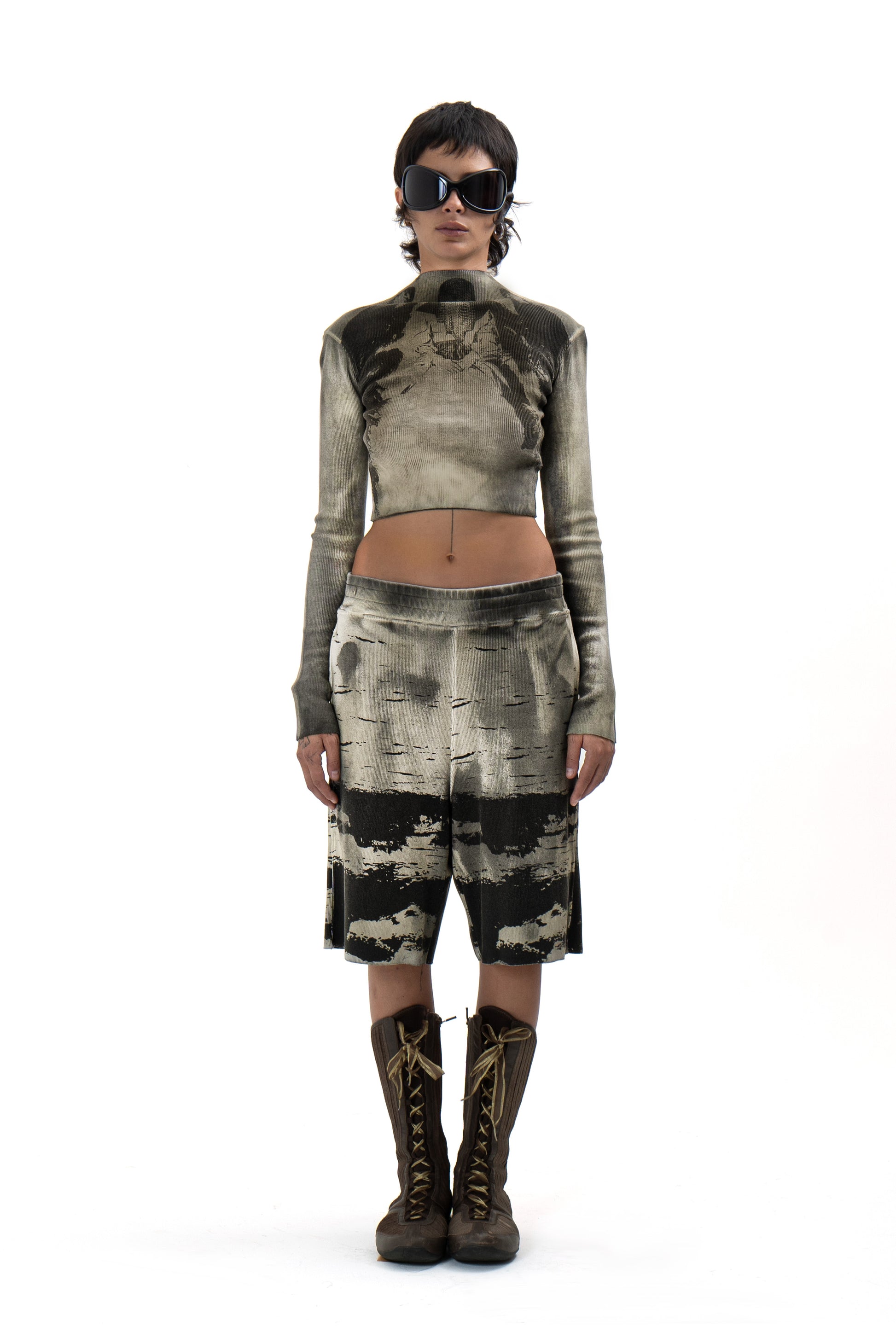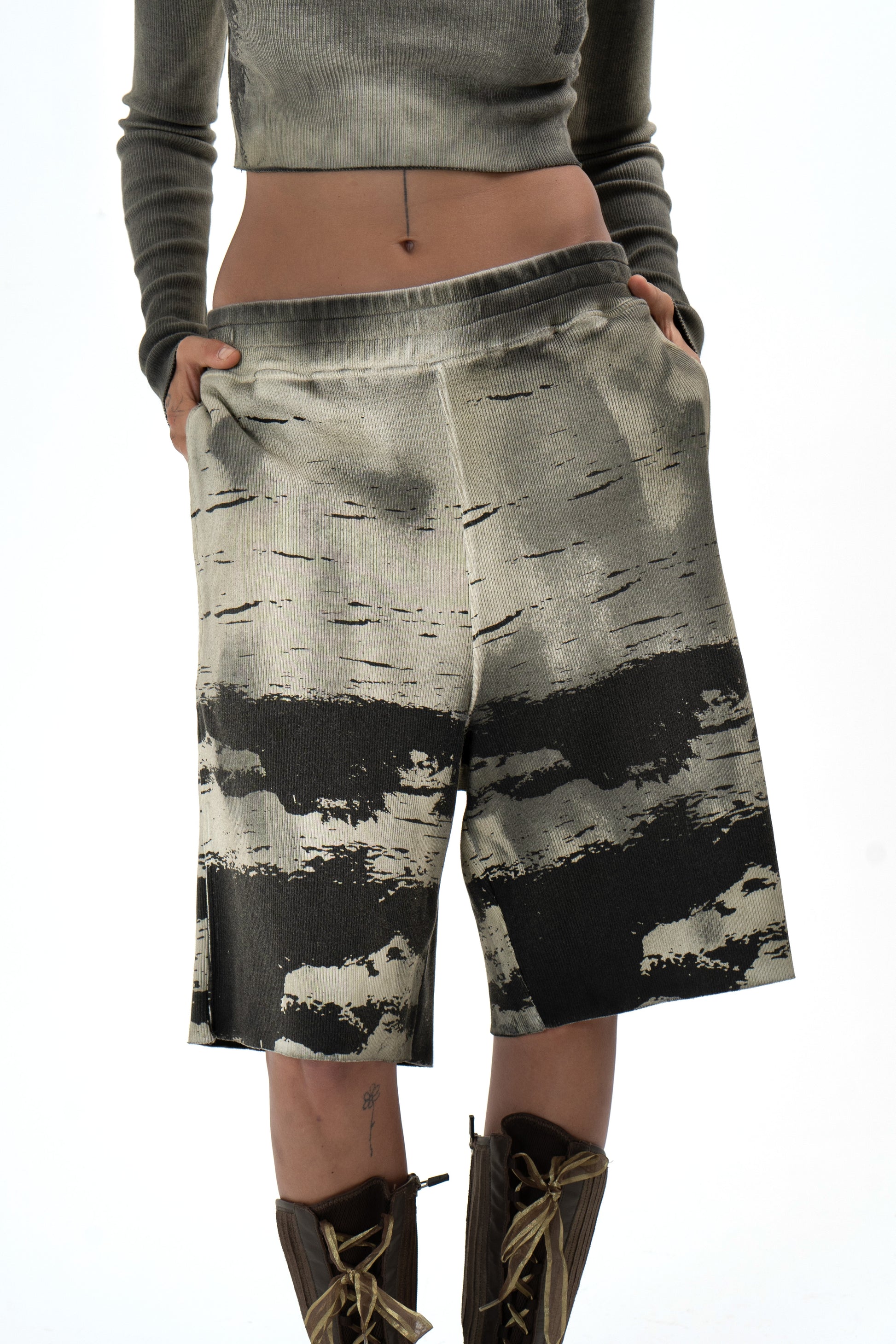 Oversized ribbed 100% cotton boxer shorts with an elastic waistband for a comfortable fit. The loose cut and side pockets offer practicality and freedom of movement. The black print with olive green shades adds a cool touch, perfect for a modern, functional streetwear look.