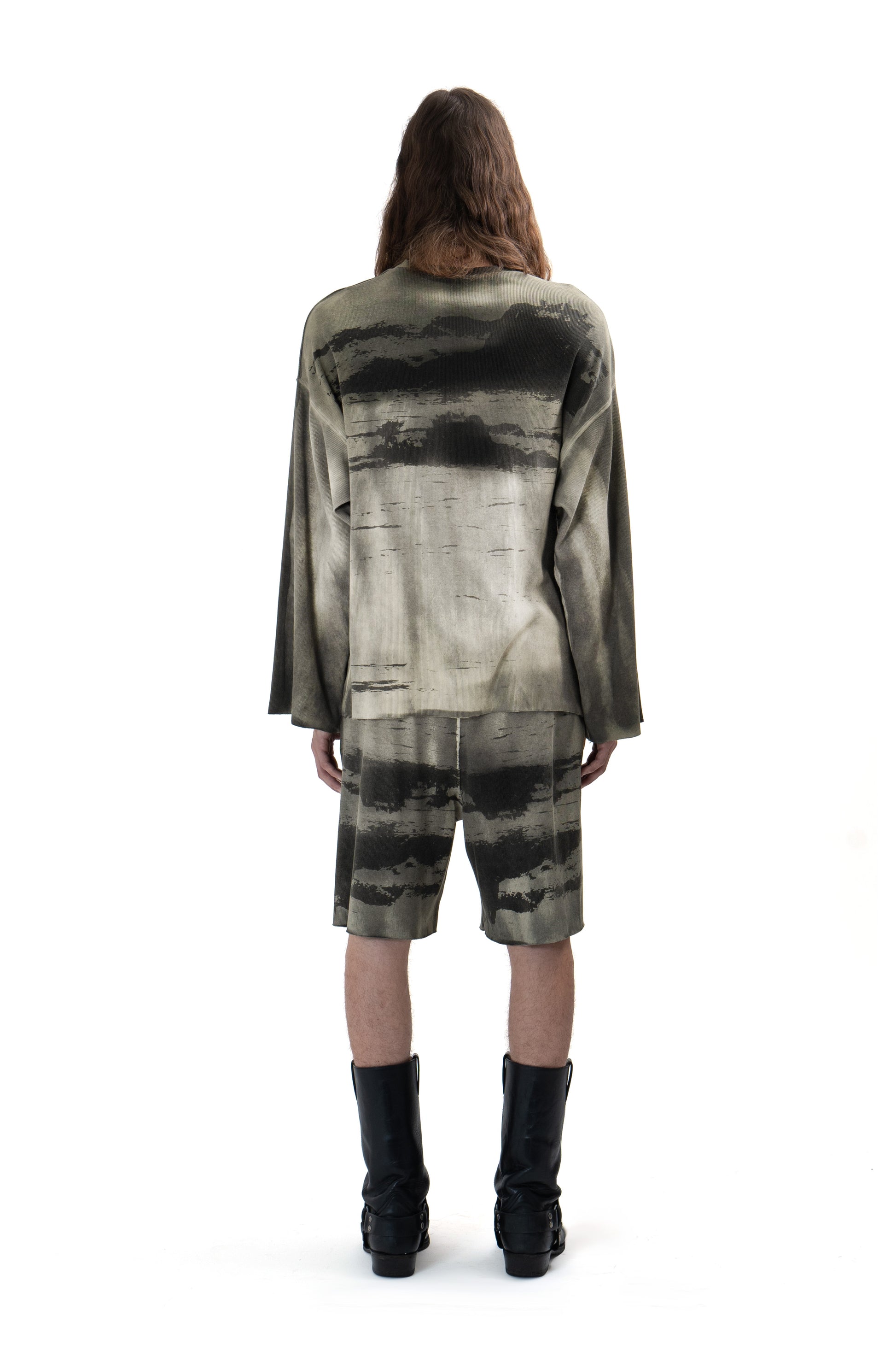 Oversized ribbed 100% cotton sweater with a black 'ANGELO VELATO' print, offering a dark and cool look. The wide round neckline ensures maximum comfort, while the olive green color with a dirty look effect adds a bold touch. Perfect for a refined and contemporary streetwear style.